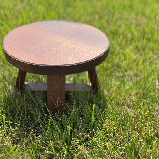 Each stand is carefully constructed by hand, featuring clean lines, a geometric base, and a smooth round top that reveals the rich grain patterns of authentic walnut. No stains or veneers—just real hardwood and craftsmanship that lasts.